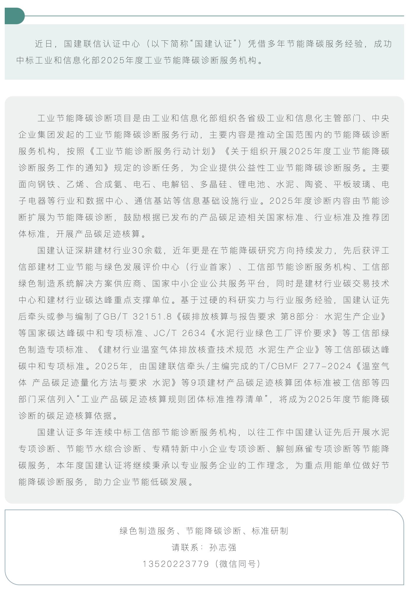 国建认证中标工信部2025年度工业节能降碳诊断服务机构