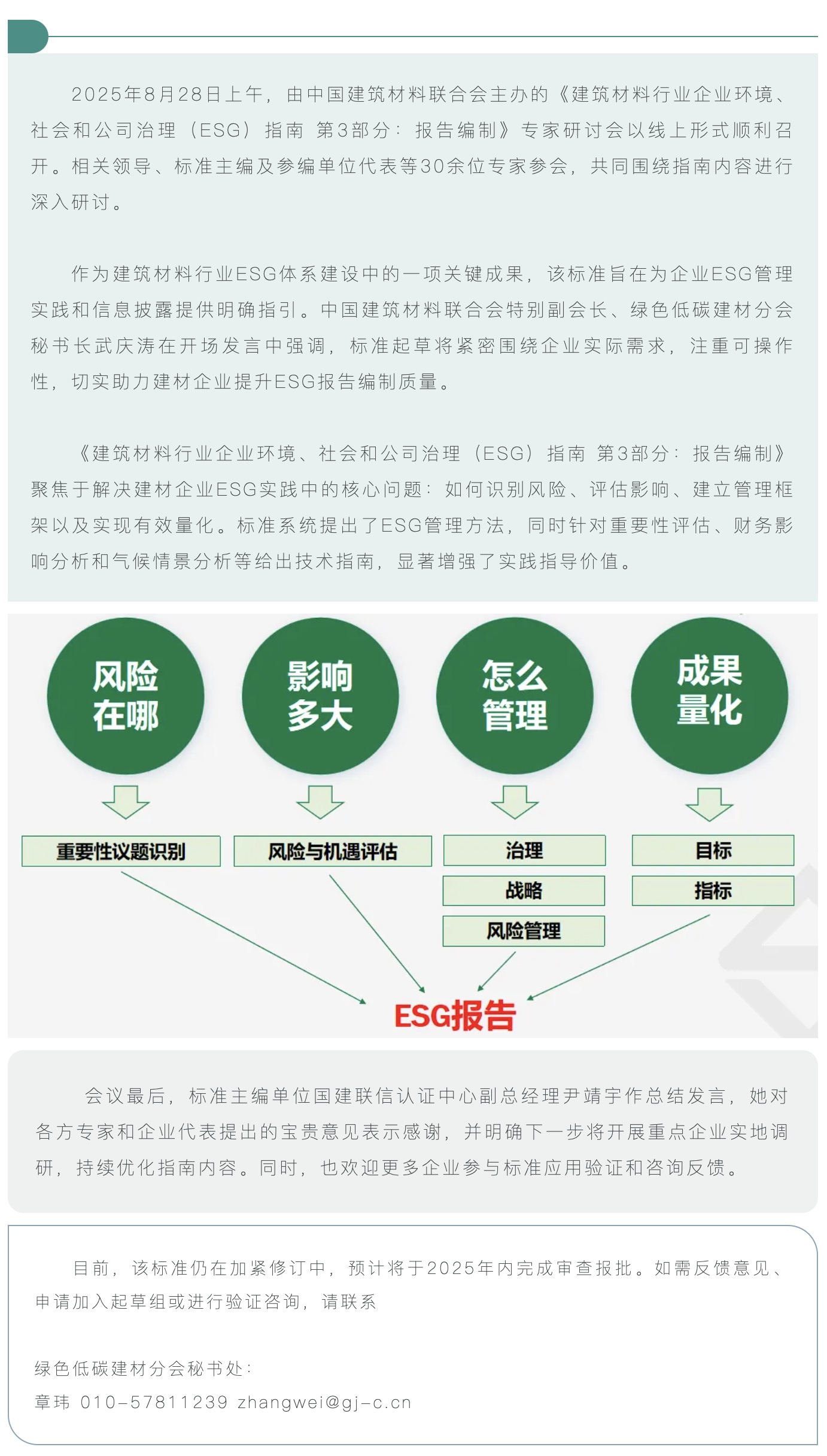 《建筑材料行业企业环境、社会和公司治理(ESG)指南 第3部分:报告编制》专家研讨会成功召开