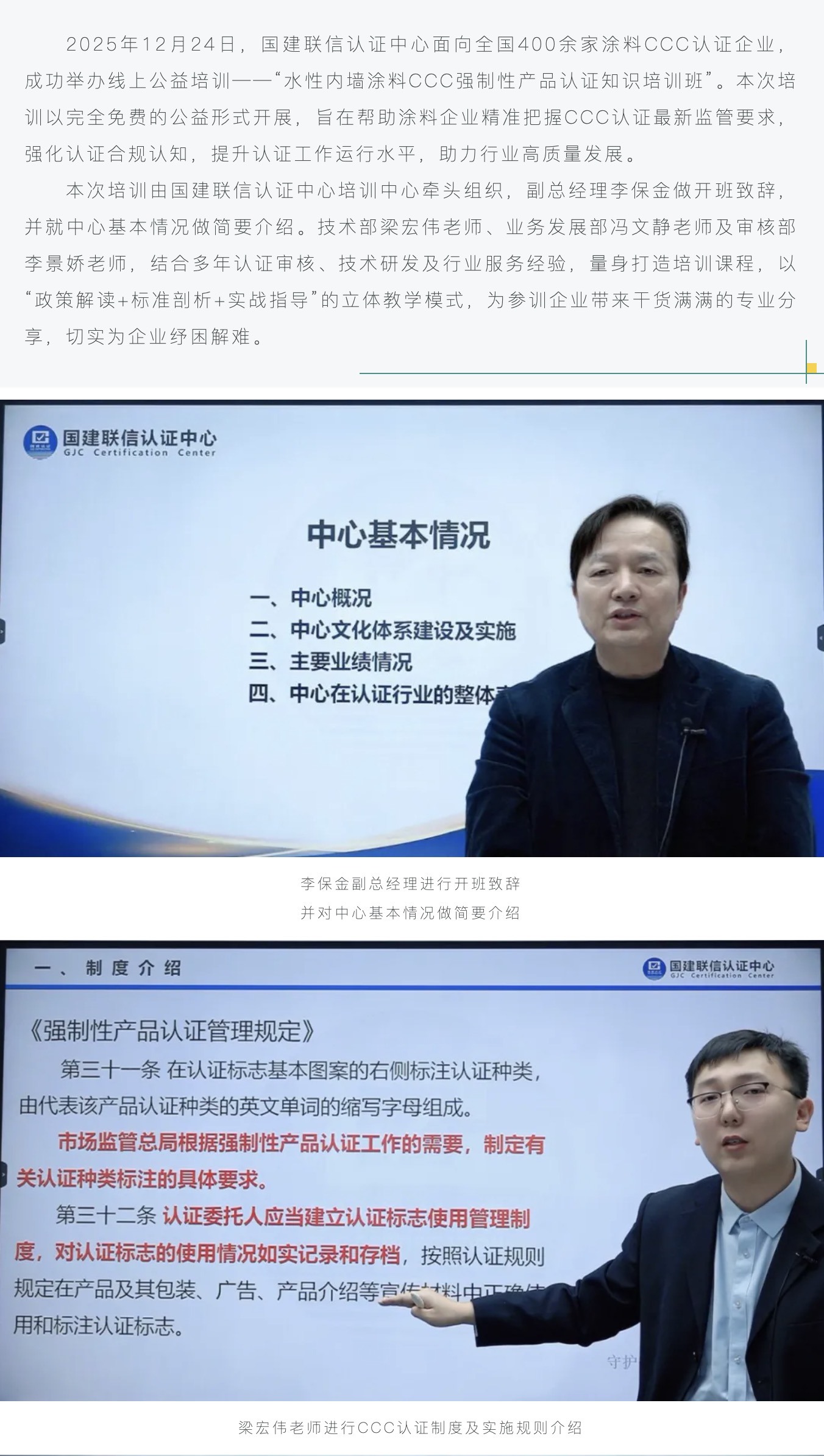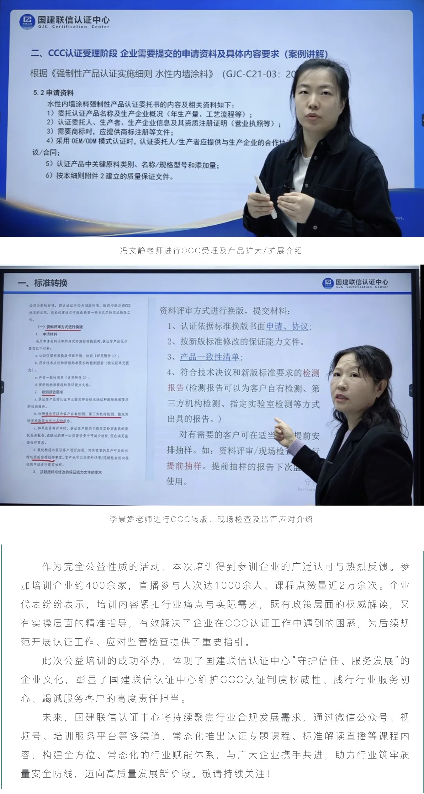 守护CCC认证制度 践行机构服务初心国建联信免费开展水性内墙涂料认证公益培训