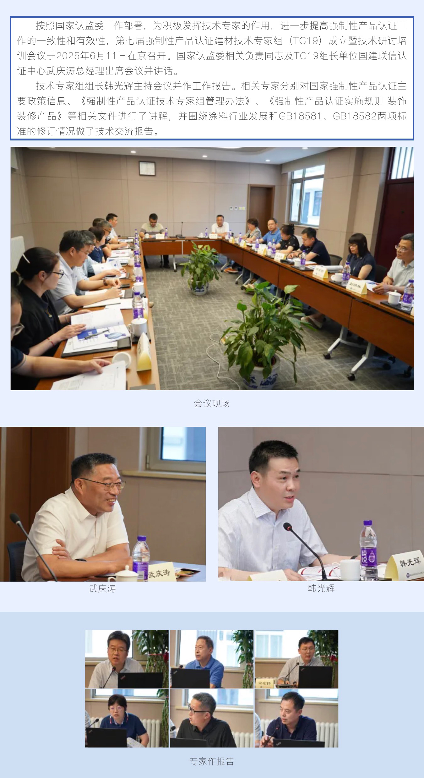 第七届国家强制性产品认证建材技术专家组(TC19)成立暨技术研讨培训会议顺利召开