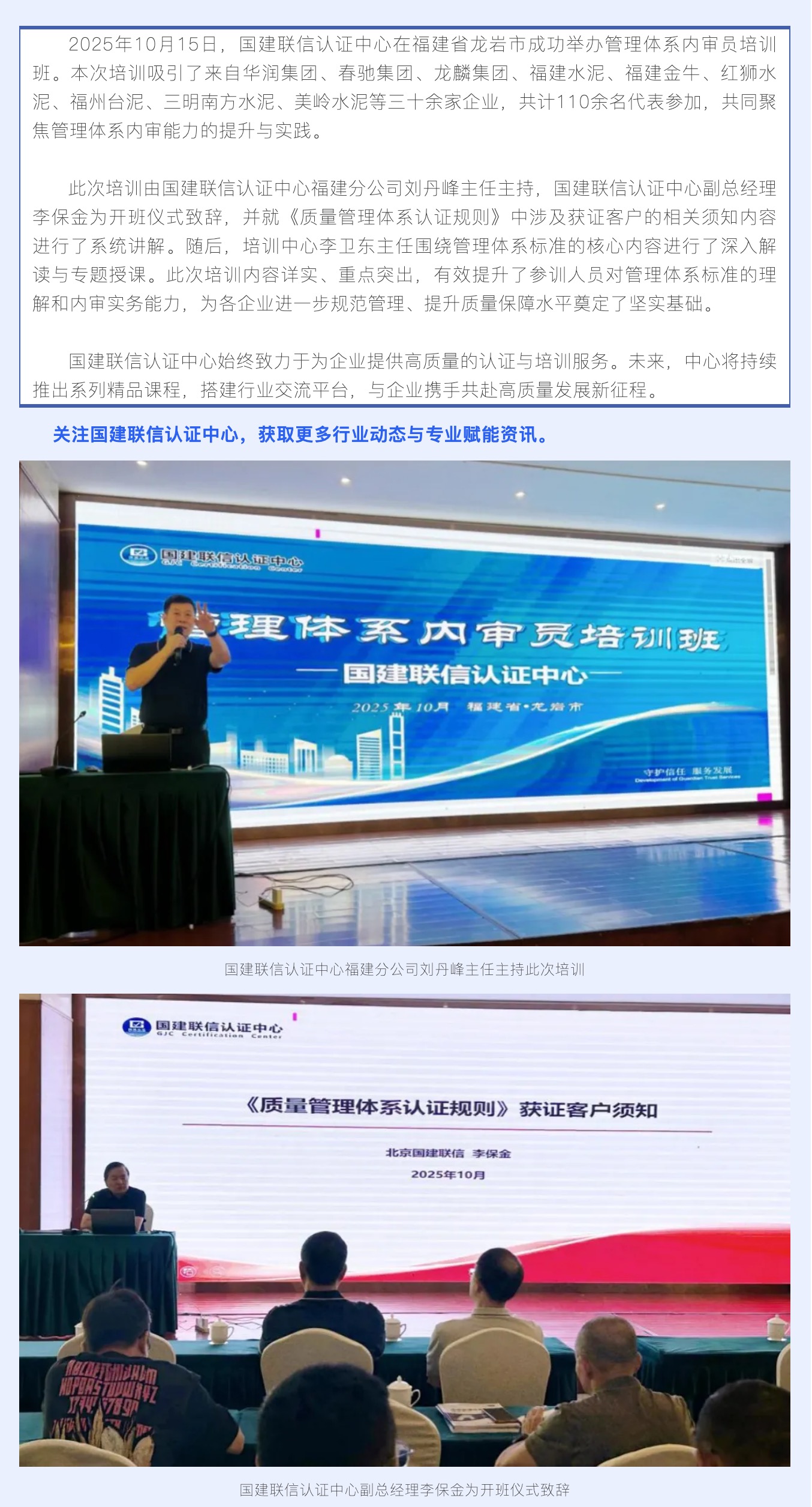 国建联信认证中心成功在福建龙岩举办管理体系内审员培训班