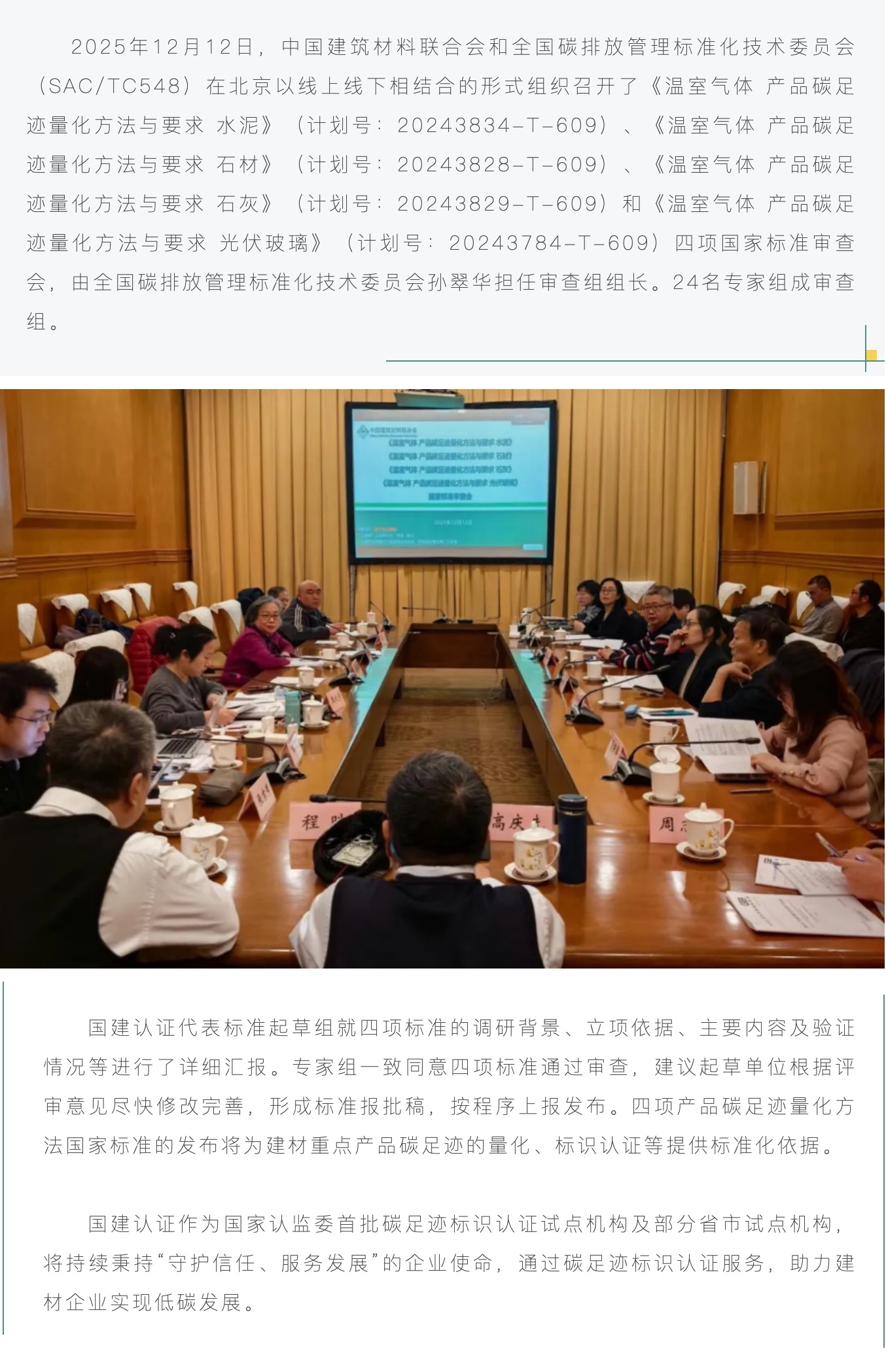 《温室气体 产品碳足迹量化方法与要求 水泥》等四项碳足迹国家标准顺利通过审查
