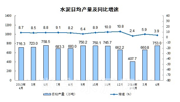 根据国家统计局公布的数据显示,2014年3月份水泥产量22589万吨,同比增长3.9%;2014年1-4月份全国规模以上水泥产量67207万吨, 前4个月累计水泥产量仅为4.3%,增速创10年来最低点!