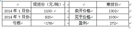 再次,现货价格从2013年的1400左右降到当前的1100,仍然处于下跌的趋势中,只有进行套期保值,才能实现2014年的总体计划,实现扭亏为盈;否则,根据当前形势,如果不进行套期保值,企业亏损会更加恶化。
