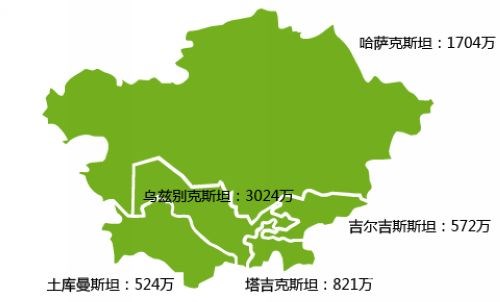 图1:中亚五国总人口达到6645万人(2013年)