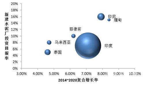 2014年,东南亚、南亚水泥总产量在6亿吨左右,印度、越南、印度尼西亚是产量大国,分别为2.8亿吨、7000万吨和6000万吨,巴基斯坦、马来西亚、泰国、菲律宾、孟加拉国紧随其后,水泥年产量在1500~3000万吨左右。南亚地区印度、巴基斯坦是水泥产销大国,两国水泥业存在着产能过剩问题,然而印度水泥企业对市场预期广泛看好,目前仍继续扩大产能;巴基斯坦是水泥出口大国,水泥出口至南非、斯里兰卡、阿富汗、印度等国家,年产能利用率在74%左右,整体仍供大于求,但巴基斯坦正在实施经济重建计划,有望大幅提升水泥需求。东南亚地区经济年均增速在5%左右,印度尼西亚、越南、马来西亚、泰国是该地区的水泥产销大国,未来水泥需求受基础设施带动有着极大潜力。根据法国巴黎银行数据,新建水泥厂投资于缅甸、印尼等国的投资回报率高于10%。