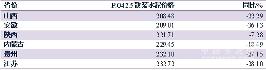 表1: 5月底P.O42.5散装水泥价格低于240元/吨的省份
