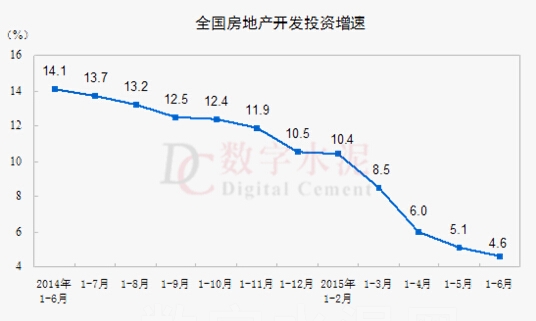 2015年1-6月份,全国房地产开发投资43,955亿元,同比名义增长4.6%(扣除价格因素实际增长5.7%),增速比1-5月份回落0.5个百分点。其中,住宅投资29,506亿元,增长2.8%,增速回落0.1个百分点。住宅投资占房地产开发投资的比重为67.1%。