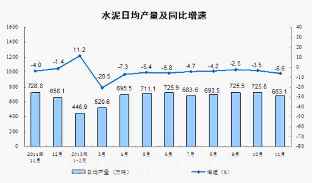 2015年11月份水泥产量20,494万吨,同比下降6.6%;2015年1-11月份全国规模以上水泥产量 214,709 万吨,同比下降5.1%。 |