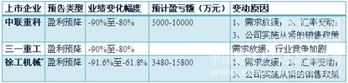 表3:建筑机械上市公司业绩预告情况