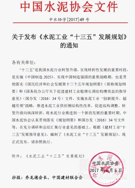 “十三五”是我国建材行业转型升级,实现转折性发展的重要阶段,是实施《中国制造2025》、实现中国制造强国的重要战略期,也是贯彻落实我国《国民经济和社会发展第十三个五年规划纲要》和《国务院办公厅关于促进建材工业稳增长调结构增效益的指导意见》(国办发〔2016〕34号)文件,实施水泥工业 “创新提升,超越引领”战略,推进水泥工业供给侧结构性改革,促进结构调整、转型升级向纵深转折,将水泥行业推进到一个新的发展的重要时期,中国水泥协会在总结汇集全行业的意见基础上,根据《建材工业“十三五”发展指导意见》(以下简称《意见》),特制订了《水泥工业“十三五”发展规划》(简称《规划》)。《规划》分析了水泥工业在新时期所处的时代特征和面临的发展的有利条件与环境及新的需求,指出了存在的主要问题和困难,明确了“十三五”水泥行业的发展方向和思路、发展的主要目标、行业结构调整的重点、实施的重点工程,以期成为引领水泥工业转型发展的指导和作为政府部门决策及制定相关政策的重要参考。