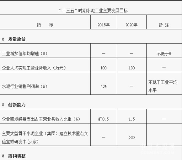 到2020年末,产业结构转型升级向纵深转折取得阶段成果。产业结构优化取得重大进展,技术、装备水平明显提升,水泥行业产能严重过剩矛盾基本解决,效益显着提高;水泥行业绿色发展水平更高,两化融合深度发展,产业集中度显着提高,国际竞争力、引领力进一步增强。