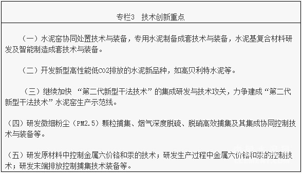 继续支持对现有企业的节能减排技术改造,开展清洁生产。加快新技术新装备如高效粉磨技术、高效能烧成系统技术、高效脱氮脱硫技术、燃料替代技术、协同处置技术、第二代新型干法集成创新技术、高效大型袋式除尘技术等不断提升不断推广应用。