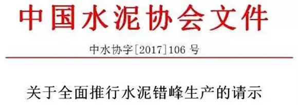 中国水泥协会于11月6日向工信部原材料司发出《关于全面推行水泥错峰生产的请示》,表示错峰生产作为减少污染排放量叠加的环境政策,是对所有从事水泥制造的企业(熟料生产企业、水泥粉磨站企业)提出的要求,所有水泥企业都必须无条件的执行错峰生产政策。