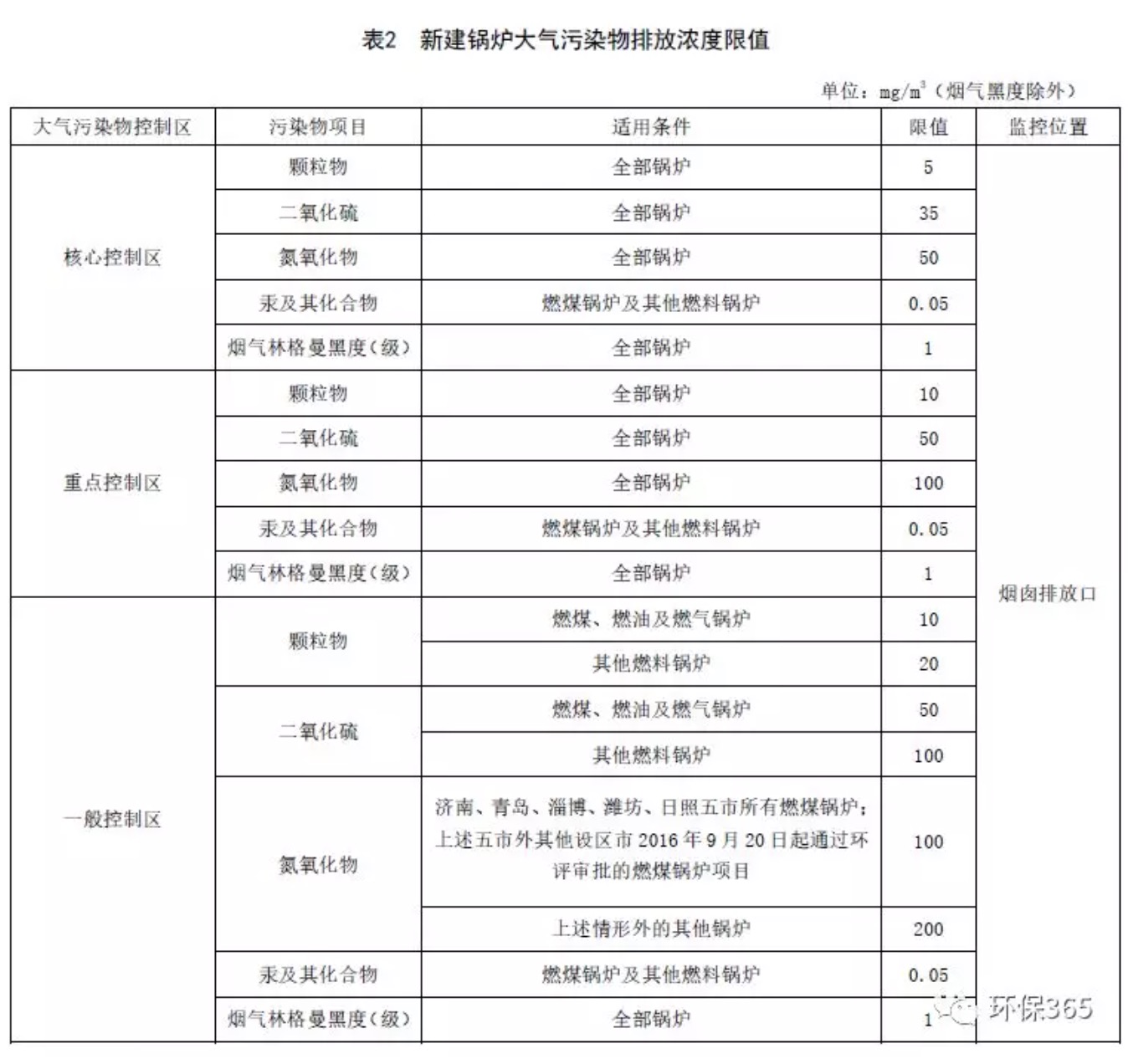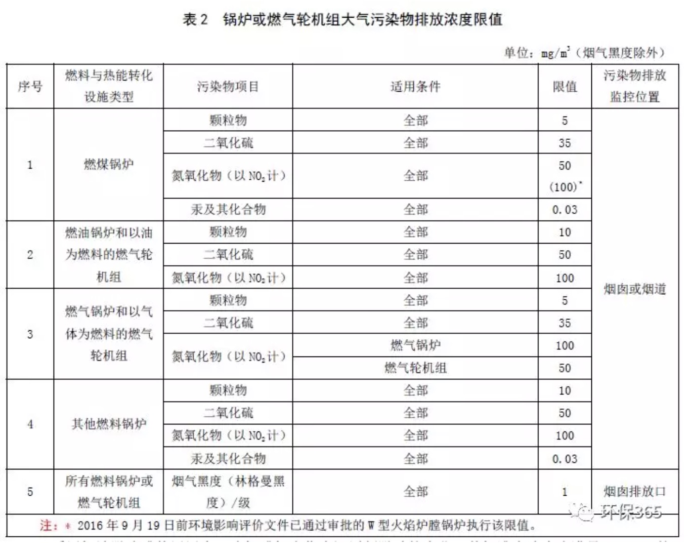 2020年1月1日起,现有燃油、燃气和其他燃料锅炉按所在控制区执行表2中的排放浓度限值。