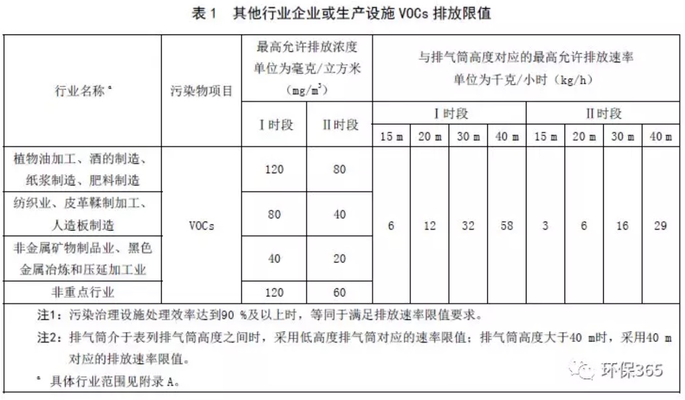 自2020年1月1日起,现有企业按所属行业执行表1 中Ⅱ时段的排放限值。