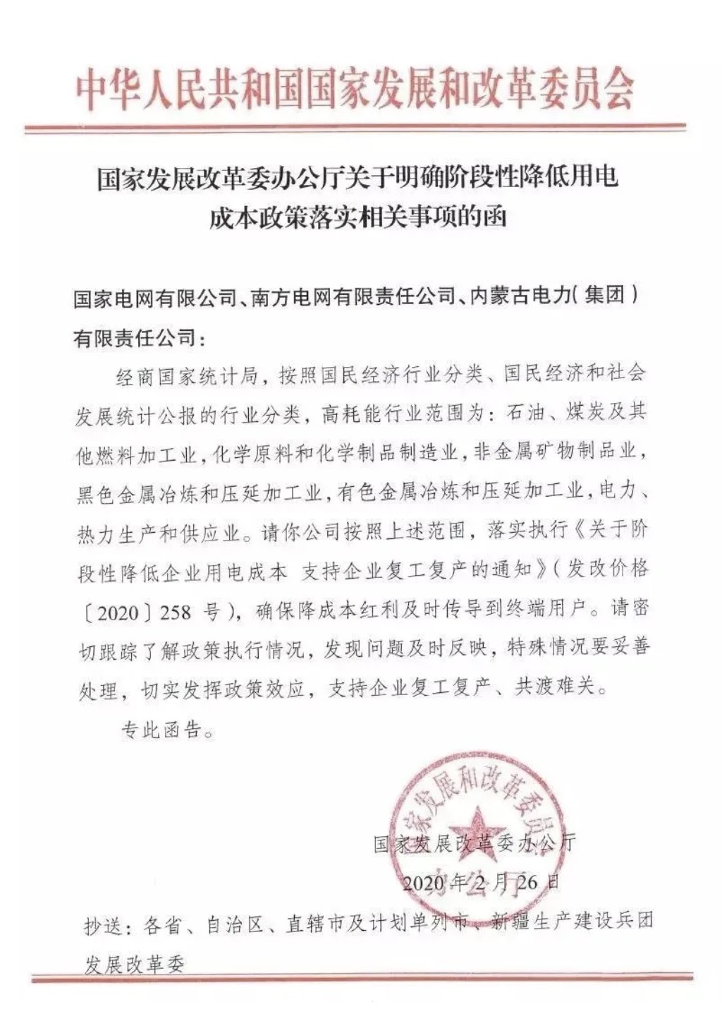 近日,国家发展改革委印发《关于明确阶段性降低用电成本政策落实相关事项的函》,函件中进一步明确高耗能行业范围为: