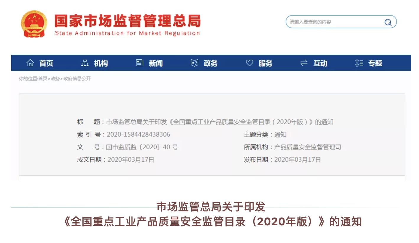 市场监管总局2020年3月14日全国重点工业产品质量安全监管目录(2020年版)