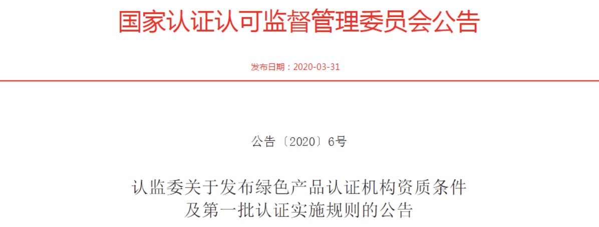 认监委关于发布绿色产品认证机构资质条件及第一批