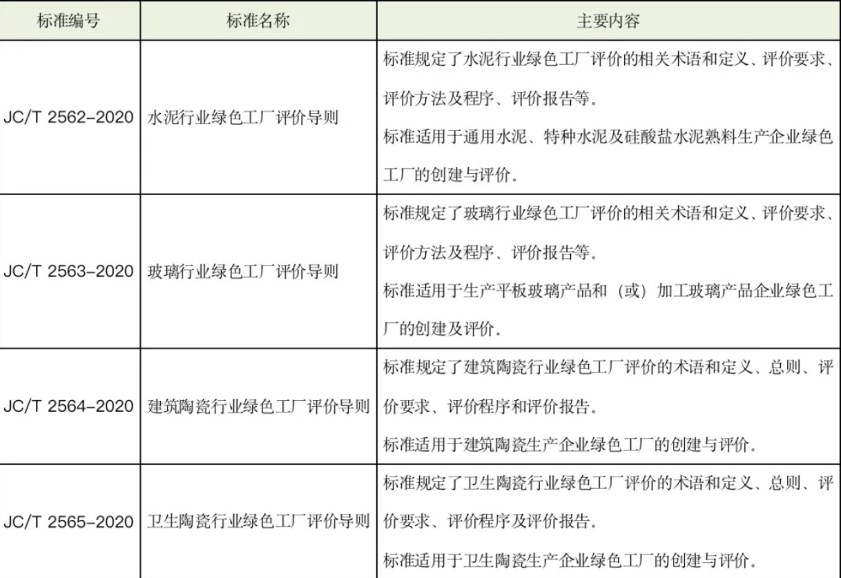 水泥、玻璃、建筑陶瓷及卫生陶瓷行业绿色工厂评价导则标准正式发布