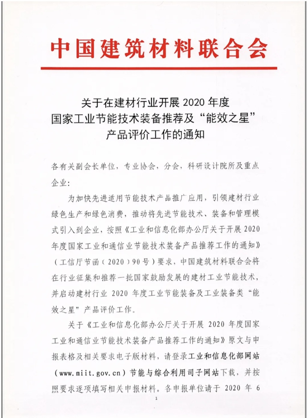 建材行业开展2020年度国家工业节能技术装备推荐及“能效之星” 产品评价工作