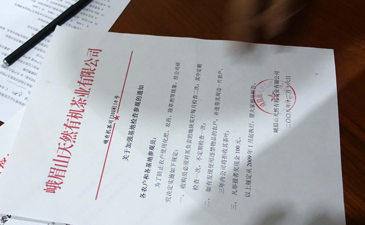 该企业为专项监督检查企业,营业执照经营范围为有机茶生产与加工(红茶、绿茶)。认证范围:茶叶种植,认证面积160hm2。