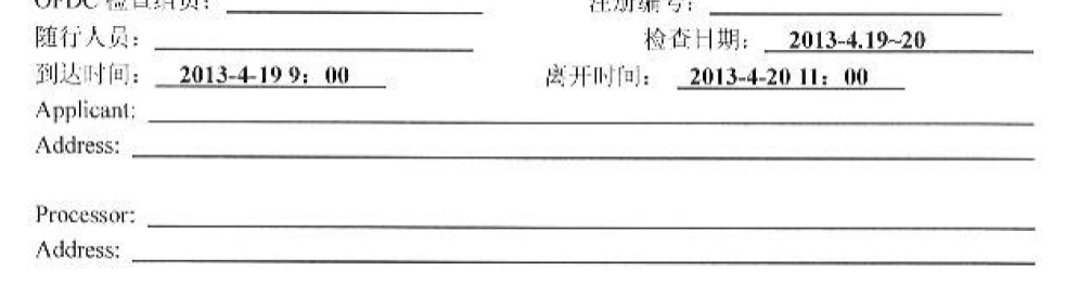 机构2013年5月14日出具的《有机产品认证检查报告》描述:认证机构检查组对企业有机茶生产基地和加工(红茶、绿茶)进行了全面检查,与企业负责人和合作社社员进行了充分的交流,显示检查时间为2013年9月19日至20日中午,检查组由一个人组成,检查时间为1.5日。