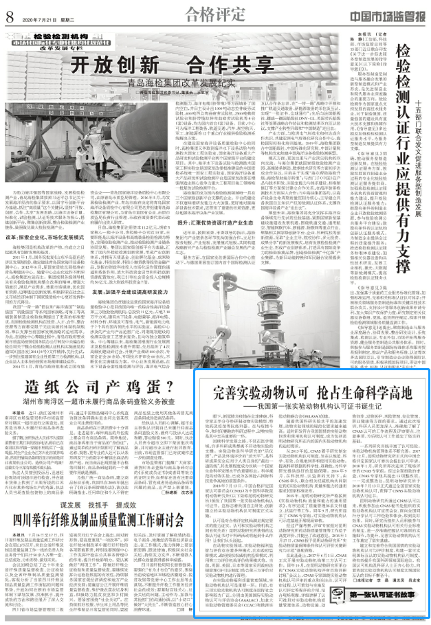 从2013年起,CNAS着手研究制定实验动物机构认可制度,旨在以规范、科学、有效、合规地饲养和使用实验动物,提高科研数据的科学性、准确性,为科学研究提供良好的基础保障。2014年9月,在科技部、认监委的支持下,由CNAS牵头、联合相关权威机构共同制定的《实验动物机构质量和能力的通用要求》国家标准发布。