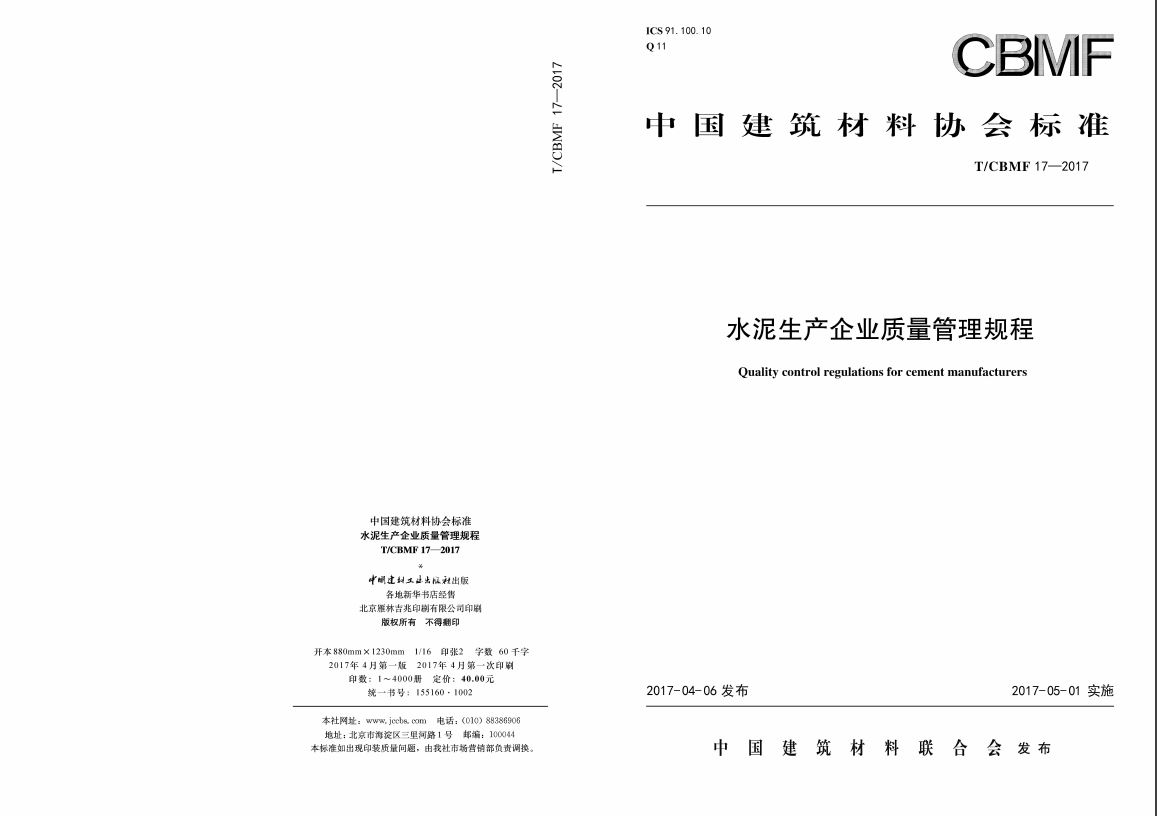 水泥生产企业质量管理规程 (T/CBMF 17-2017)
