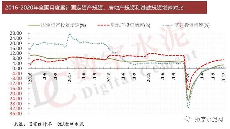 年初以来,面对新冠肺炎疫情的巨大冲击和复杂的国内外社会环境。为抑制经济下行,我国继续加强宏观政策逆周期调节力度,加快“六保”“六稳”政策落地,落实各项重大改革举措,充分发挥中国超大规模市场优势和内需潜力,构建国内循环为主、国内国际双循环相互促进的新发展格局,多措并举巩固经济复苏向好态势。积极的财政政策和稳健的货币政策持续显效发力,克服了疫情和汛情的不利影响,分阶段、有节奏、有针对性地推出一系列政策举措,经济快速回暖。尤其是水泥相关的固定资产投资、房地产投资、基建投资指标快速回升明显,使得2020年全年我国水泥需求总量未受影响,继续保持在23~24亿吨的高位平台期。