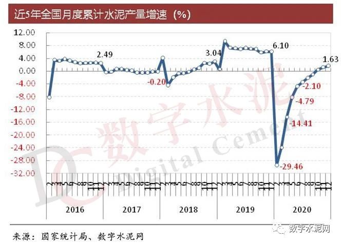 根国家统计局快报数据显示,2020年全国规模以上企业水泥产量23.77亿吨,同比增长1.63%,全国熟料产量15.79亿吨,同比增长3.07%。水泥熟料需求创下历史新高,消费总量超过16亿吨。