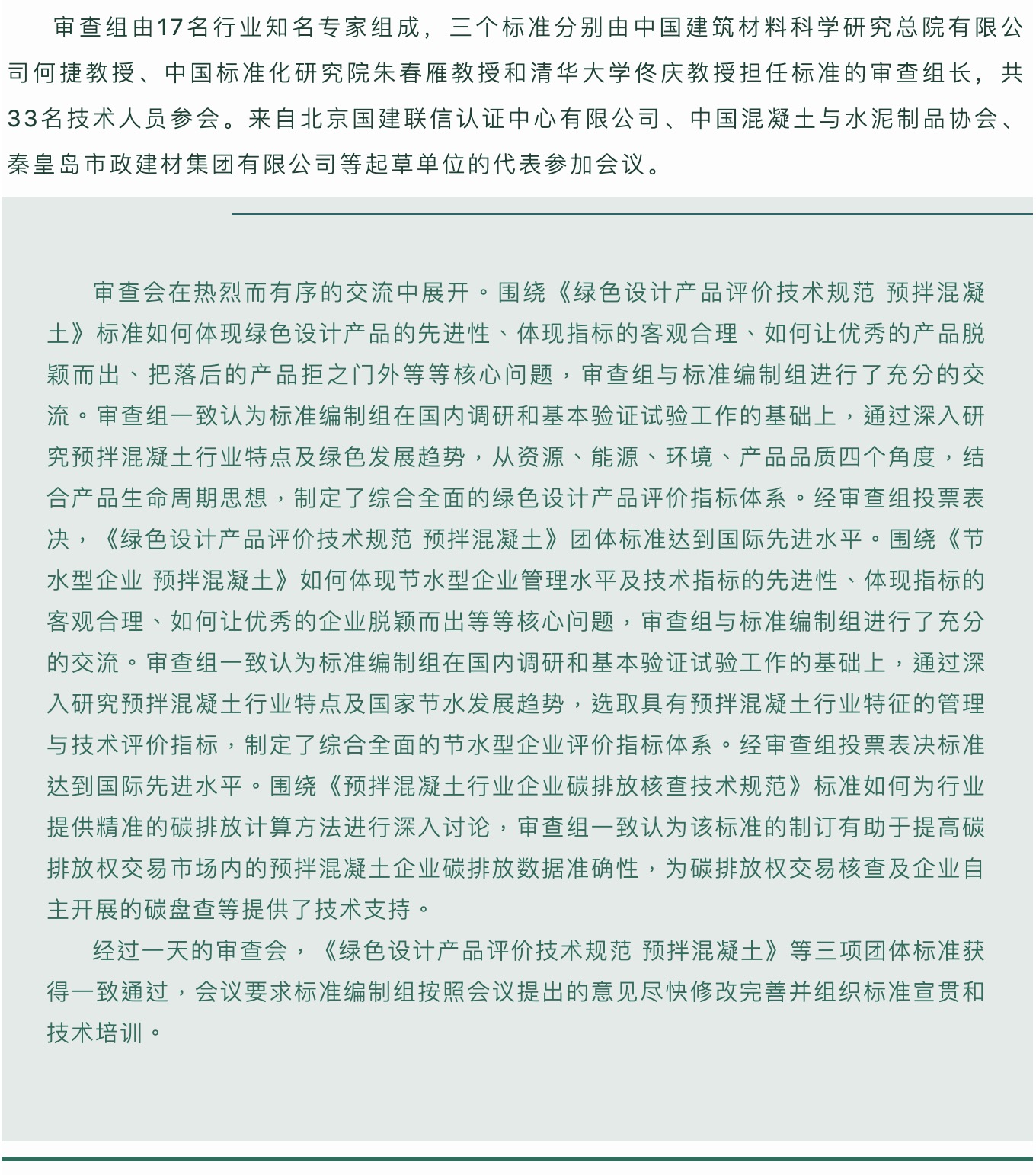 《绿色设计产品评价技术规范 预拌混凝土》等三项团体标准顺利通过专家审查