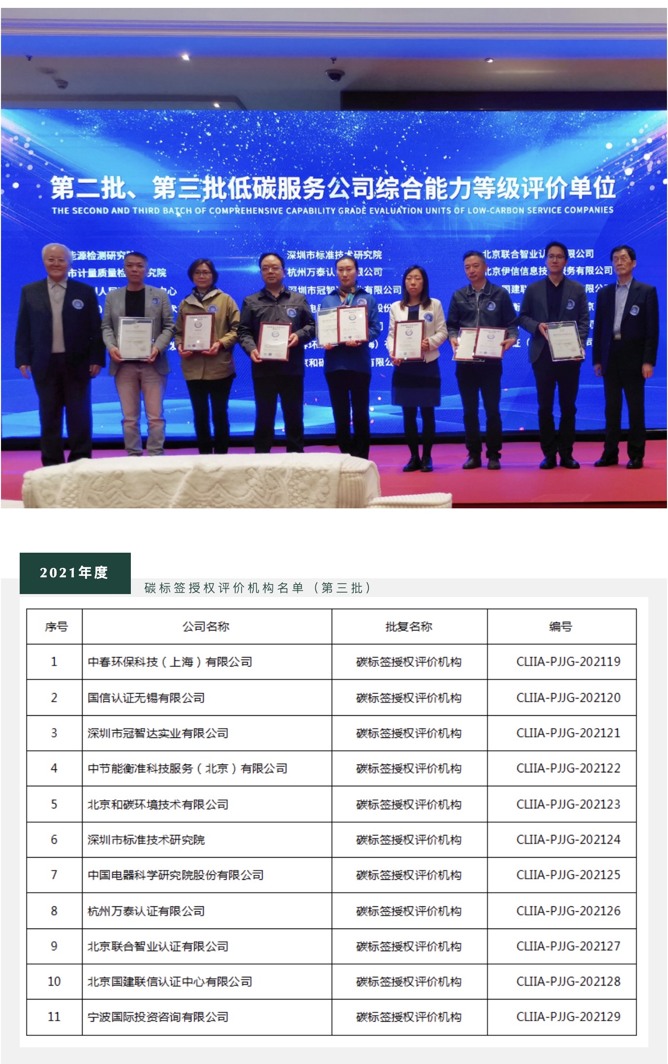 为推进我国碳标签体系化建设,加强我国碳标签体系国际互认权重,加速碳标签评价市场化推广,中国碳标签产业创新联盟与中国电子节能技术协会等单位按照《碳标签评价机构管理办法(试行)》的规定征集评选碳标签授权评价服务机构,经评定北京国建联信认证中心有限公司入选“碳标签授权评价机构”。后续,国建认证将发挥建材行业专业机构能力和优势,结合“碳标签授权评价服务机构”,积极参与碳标签评价体系市场化建设,开展碳足迹、碳标签等相关标准研制工作,开展产品和服务碳标签评价业务,助力国家、产业、企业及建材领域的低碳发展。
