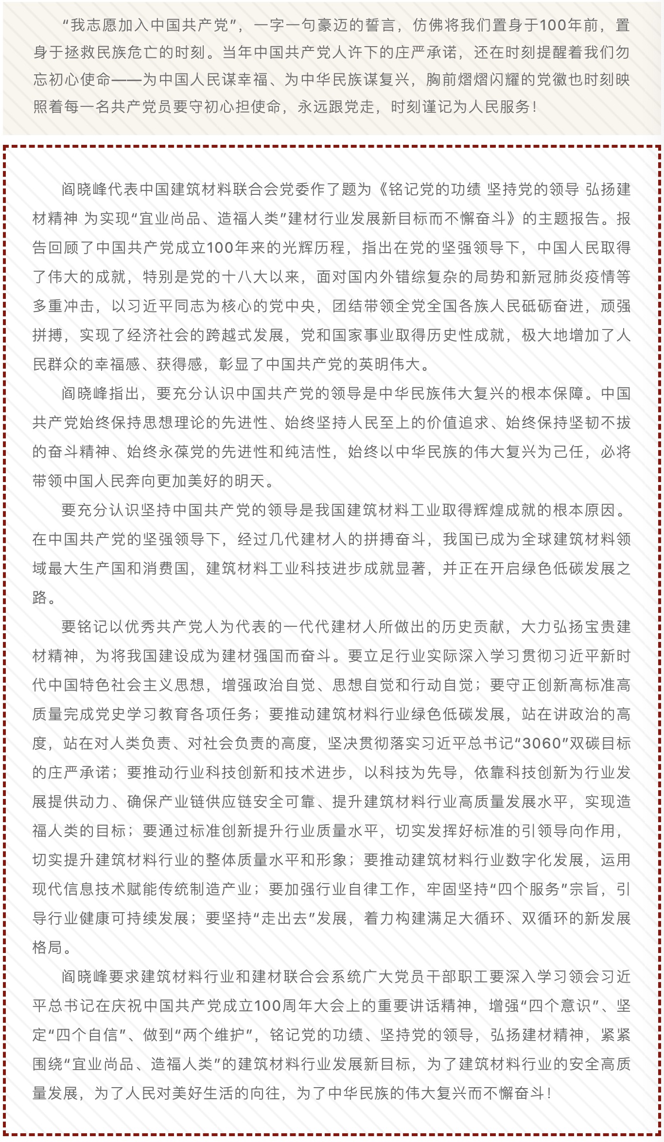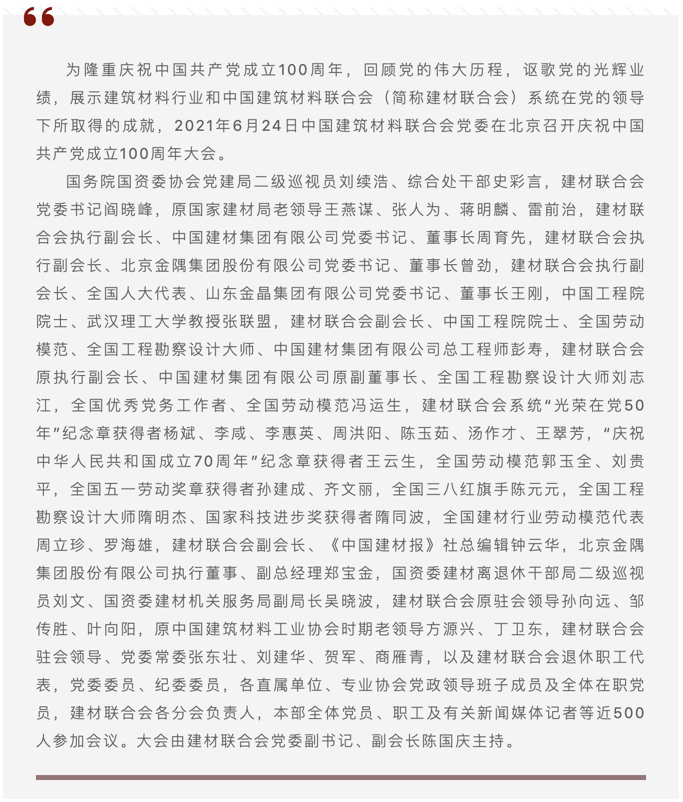 回望百年奋斗路 启航时代新征程——中国建筑材料联合会党委召开庆祝中国共产党成立100周年大会