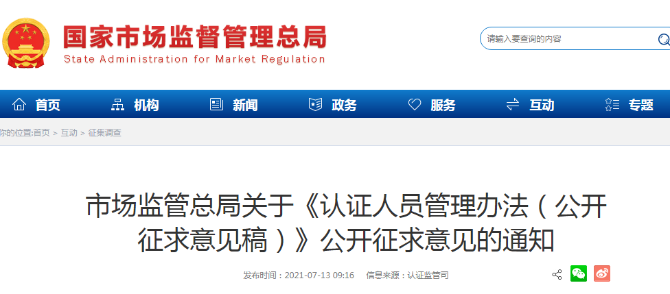 近日,国家市场监督管理总局对《认证人员管理办法(公开征求意见稿)》公开征求意见,并发布《认证人员管理办法(公开征求意见稿)》起草说明,对修订的必要性和修订的主要内容作了说明。