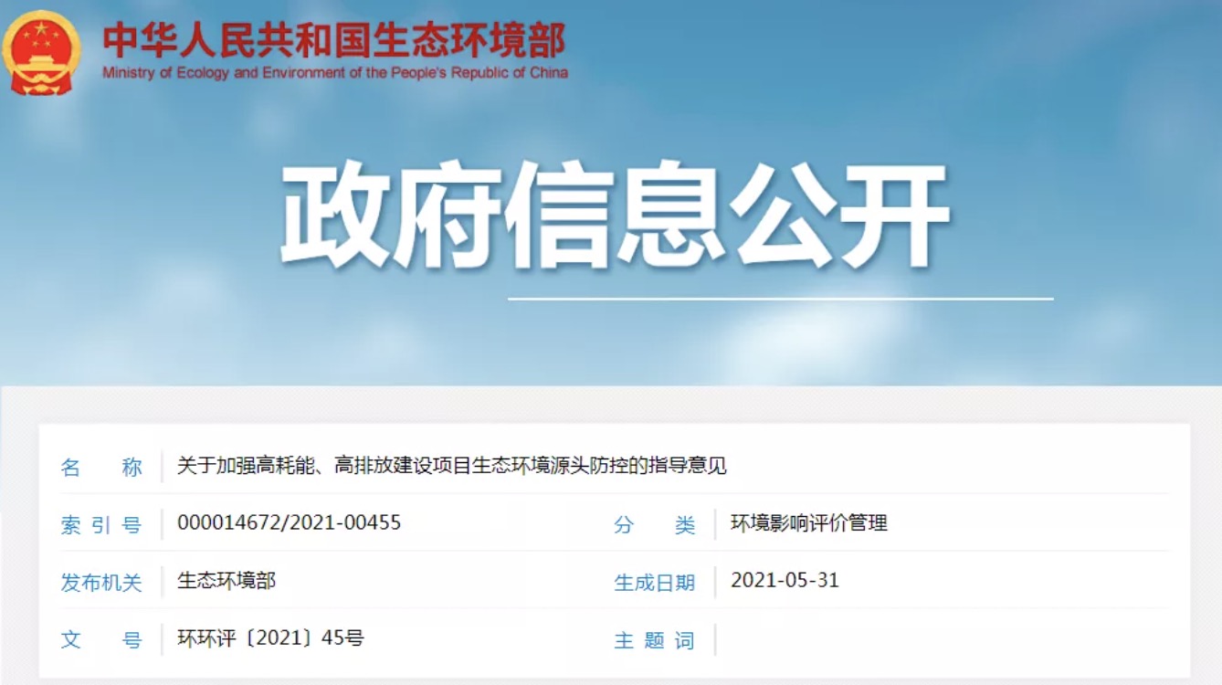 关于加强高耗能、高排放建设项目生态环境源头防控的指导意见