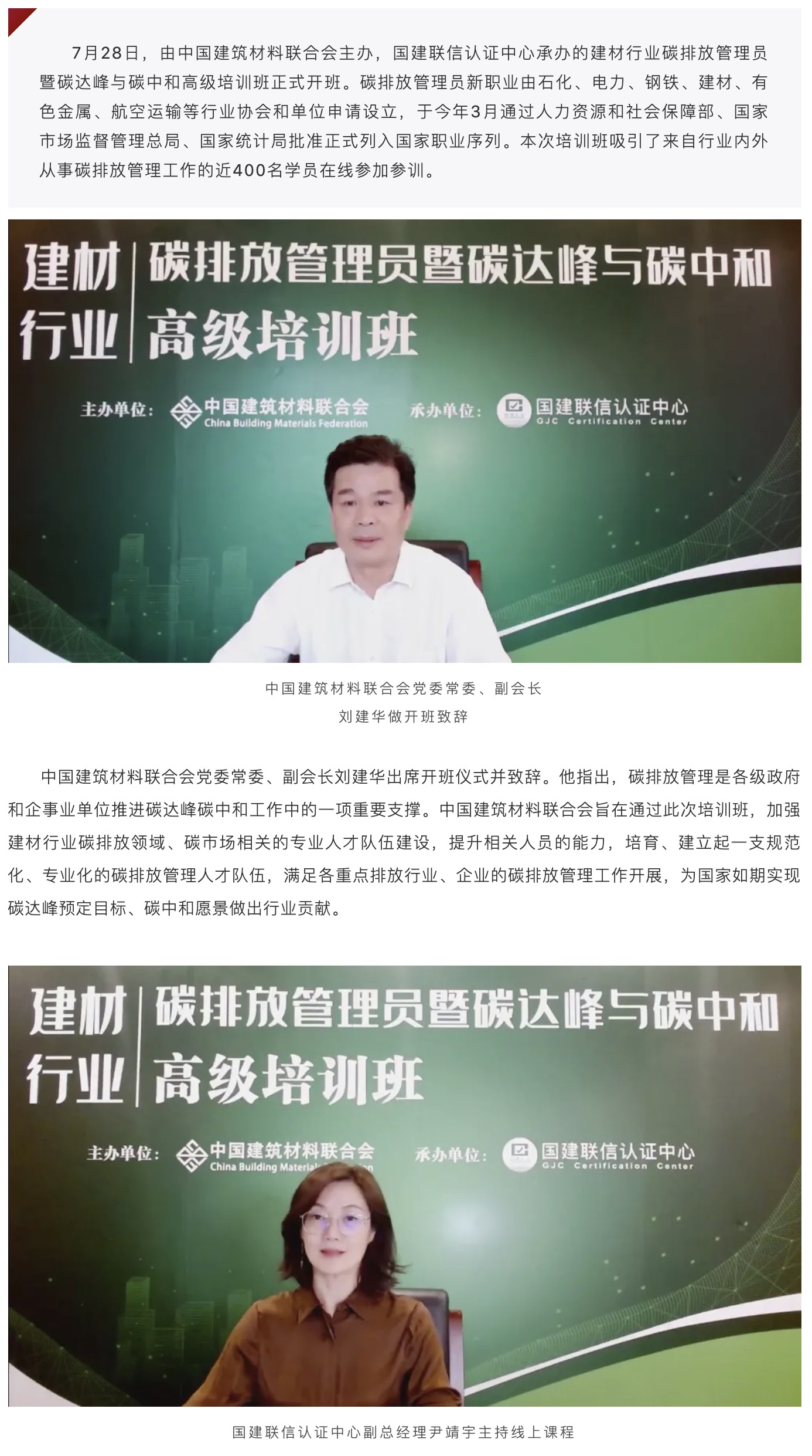 建材行业碳排放管理员暨碳达峰与碳中和高级培训班正式开课