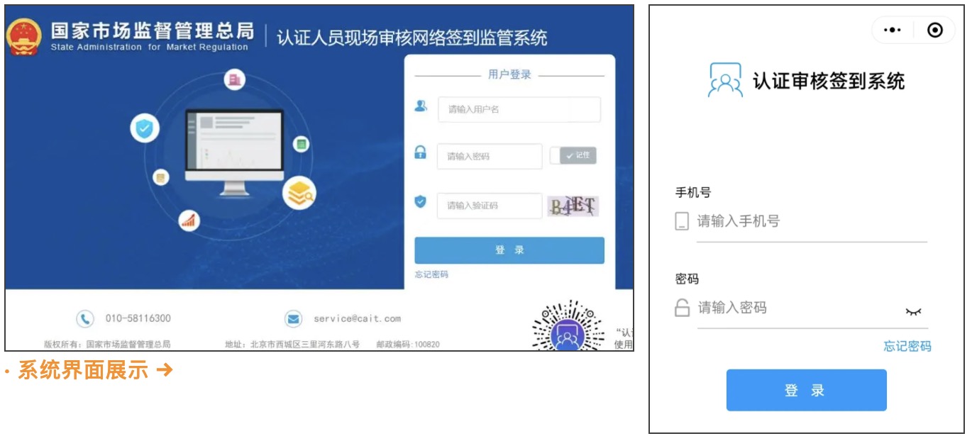 为维护公平竞争的认证市场秩序,加强对认证机构和审核人员的规范管理,认监委决定依托互联网、大数据技术优势,上线认证人员现场审核网络签到监管系统(以下简称认证审核签到系统)。为保障认证审核签到系统顺利上线运行,现将有关事项通知如下: