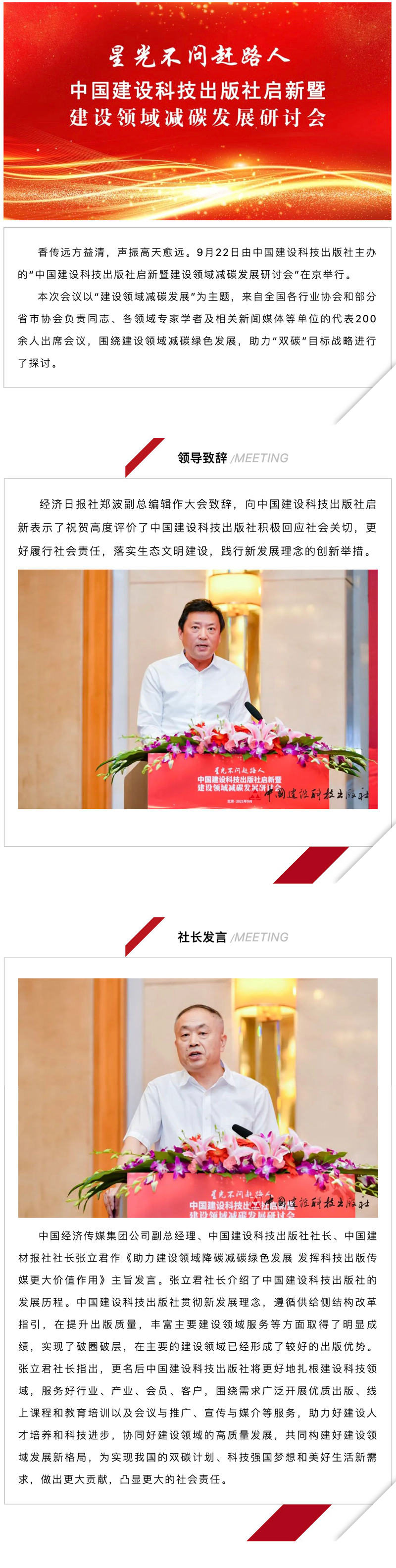 由中国建设科技出版社主办的“中国建设科技出版社启新暨建设领域减碳发展研讨会”在京举行