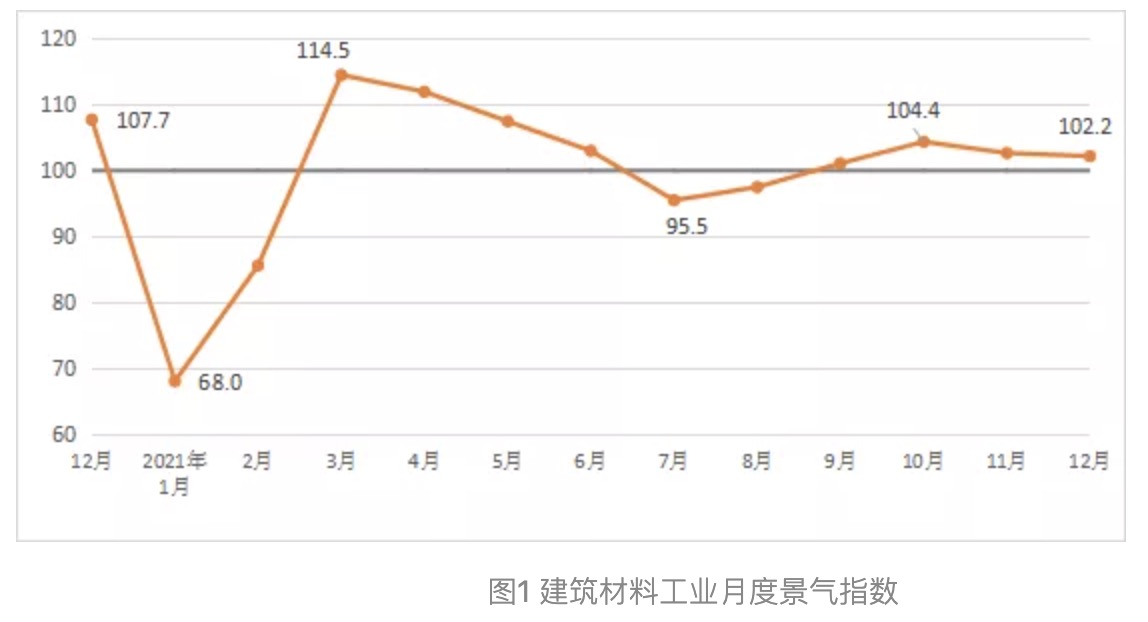 2021年12月建筑材料工业景气指数(MPI)运行情况