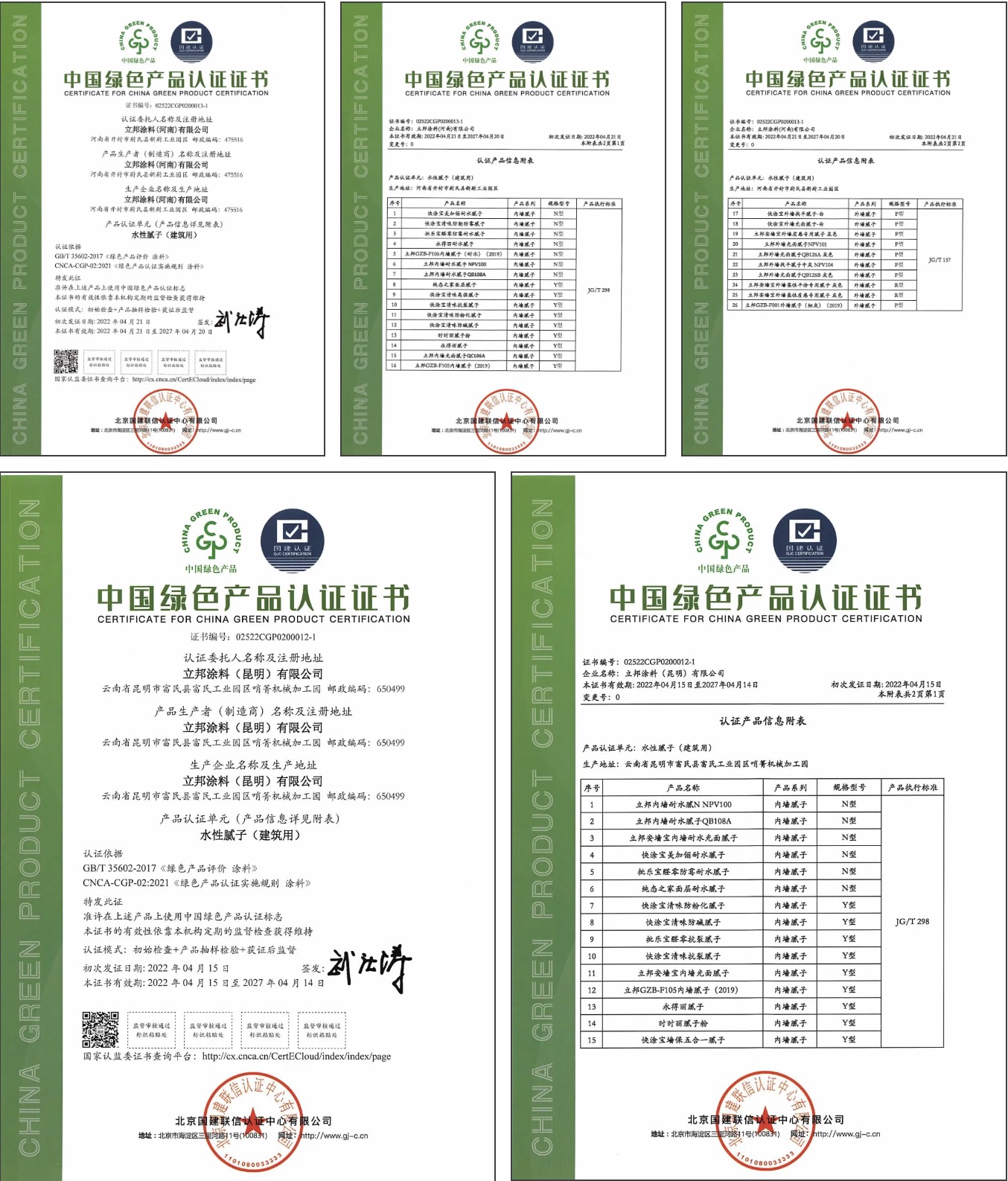近日,立邦旗下三家工厂:立邦涂料(湖北)有限公司、立邦涂料(昆明)有限公司、立邦涂料(河南)有限公司喜获国建认证颁发的“中国绿色产品认证证书”。